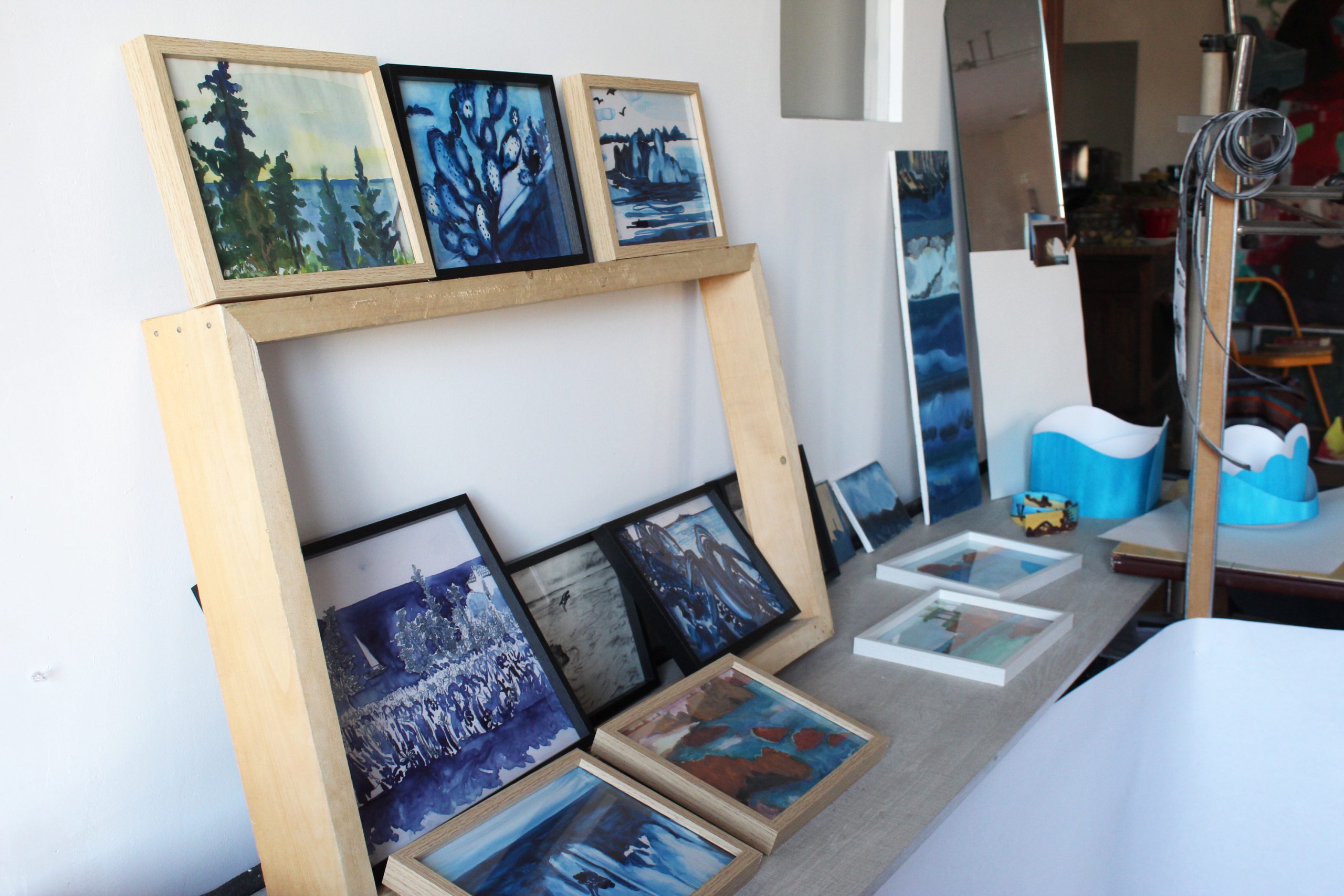 Les murmures du rivage, est une exposition itinérante (ici en préparation dans l’atelier d’Anne Maitrejean)